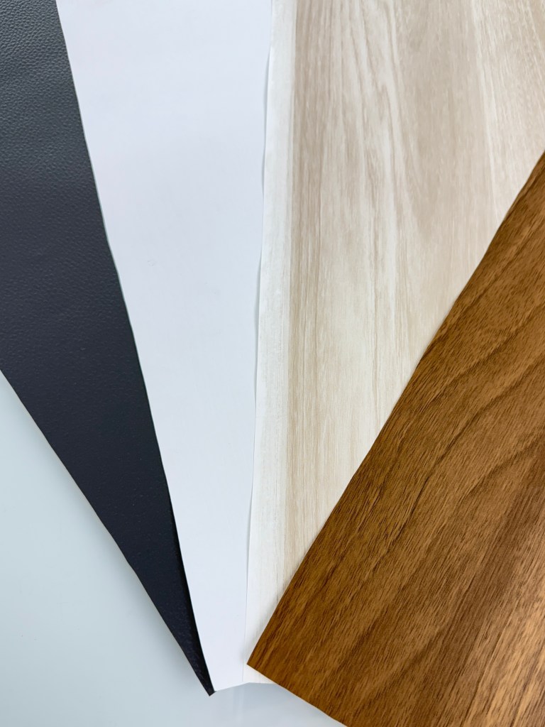 面料膠皮、裝飾紙、封邊條、真空包覆,厚度依客戶需求生產。